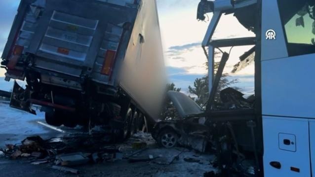 Afyonkarahisar’da yolcu otobüsü zincirleme kazaya karıştı! 30 yaralı var Afyonkarahisar’da can pazarı! Biri yolcu otobüsü 3 aracın karıştığı zincirleme kazada 30 şahıs yaralandı. İhbar üstüne adrese çok sayıda ekip sevk edilirken yaralılar hastaneye kaldırıldı. Kaza Afyonkarahisar’ın Emirdağ eyaletinde ortaya geldi. Ankara tarafına giden ve sürücüsü ile plakası öğrenilemeyen bir yolcu otobüsü, ilçenin Topdere mevkiinde bir çekici ve otomobille çarpıştı. Kazayı görenler hali anında yetkililere haber verdi. İhbar üstüne adrese çok sayıda sıhhat ve jandarma ekibi sevk edildi. 30 KİŞİ YARALANDI Sıhhat görevlileri yolcu otobüsünde yaralanan 30 bireyi Afyonkarahisar’daki detaylı hastanelere kaldırdı.